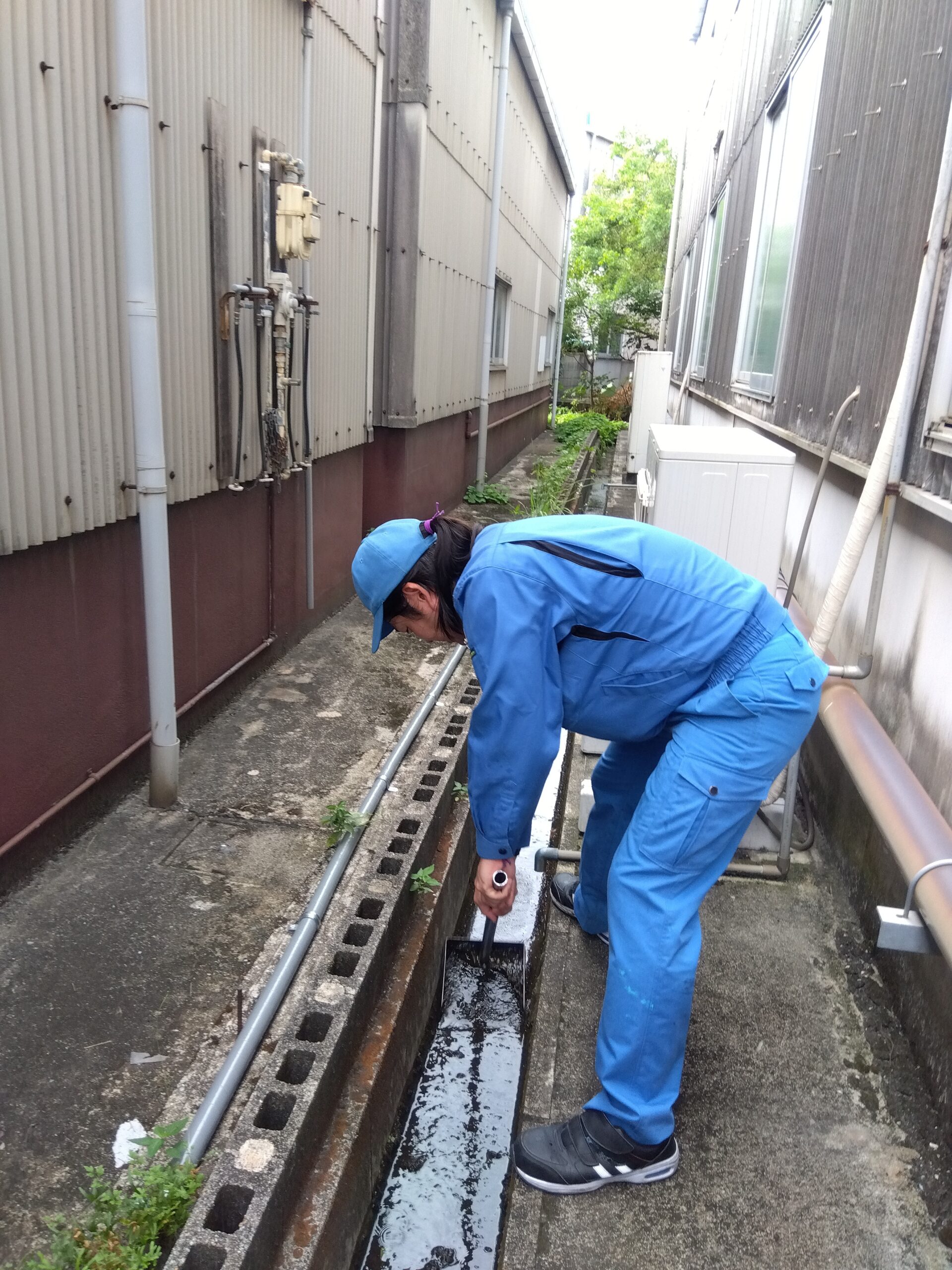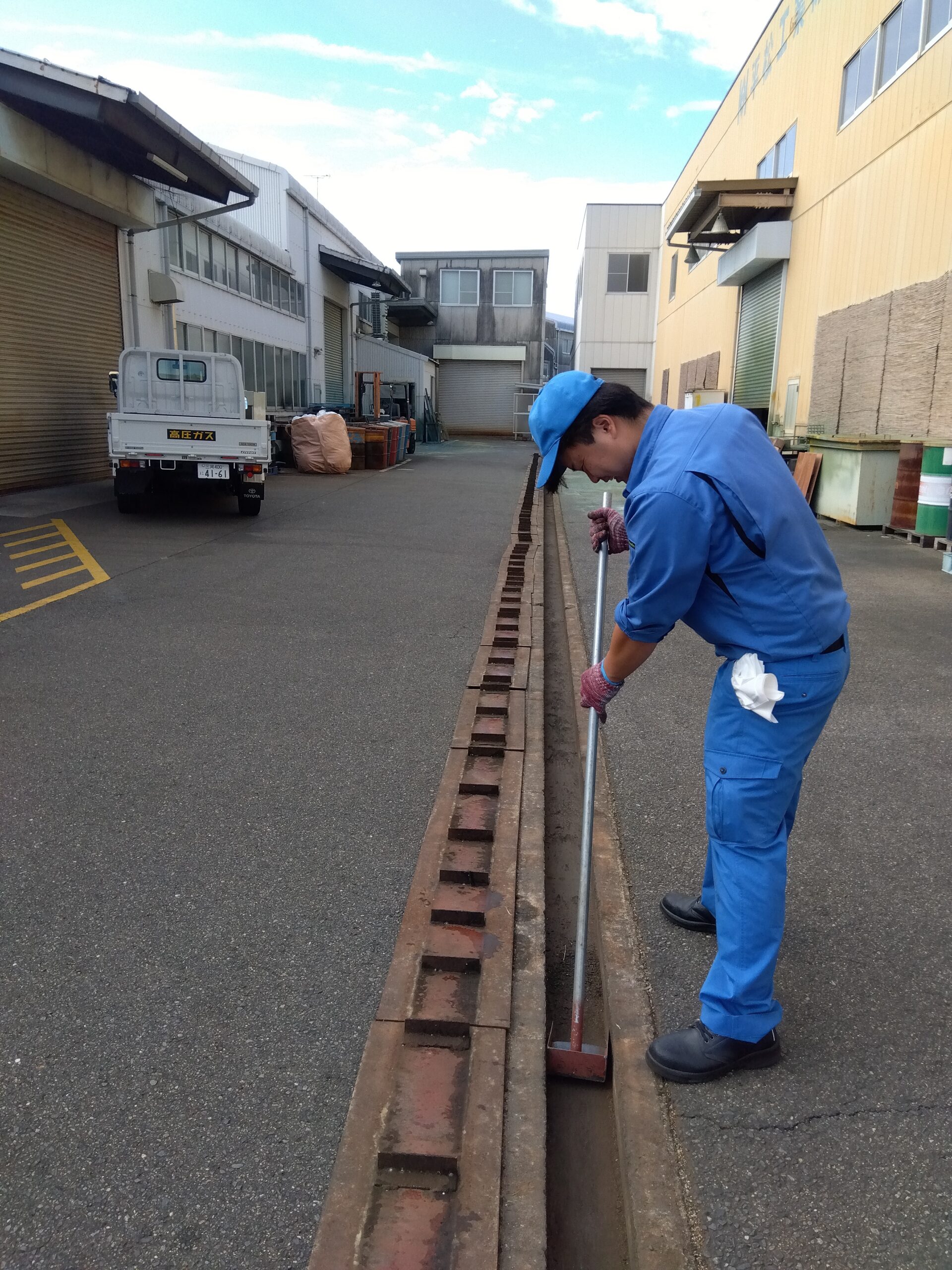 安全面には十分に気を付け、普段はできないような側溝の掃除や高い箇所のほこりも取っていきます。