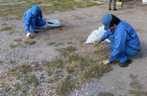 工場周辺や駐車場の草むしりもします。